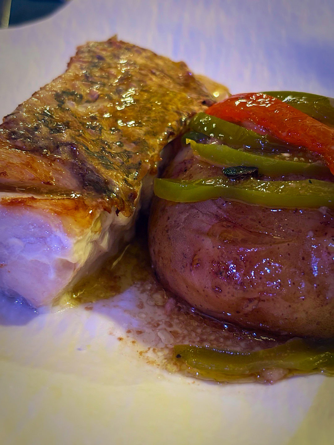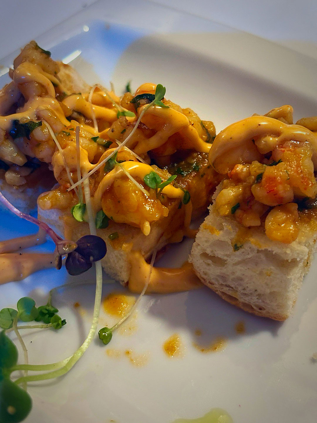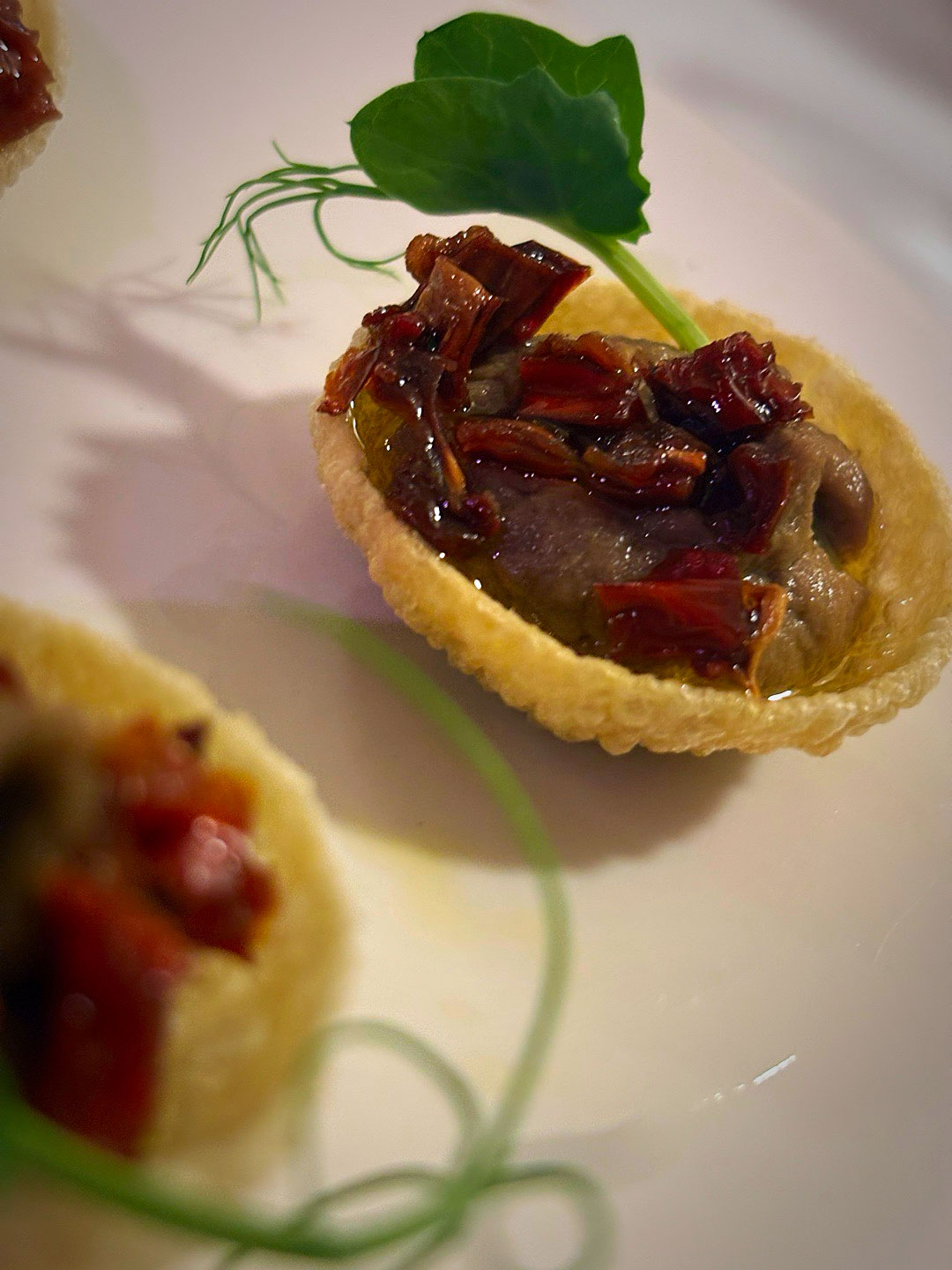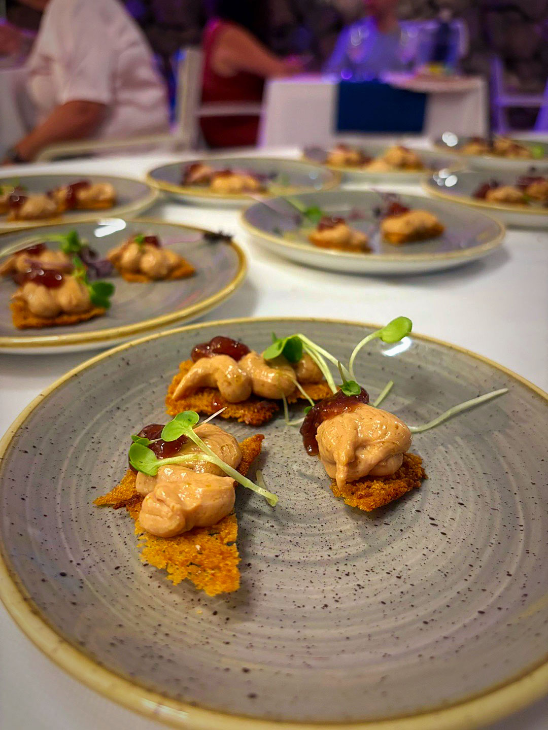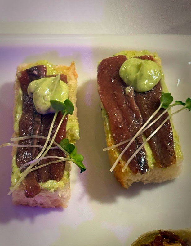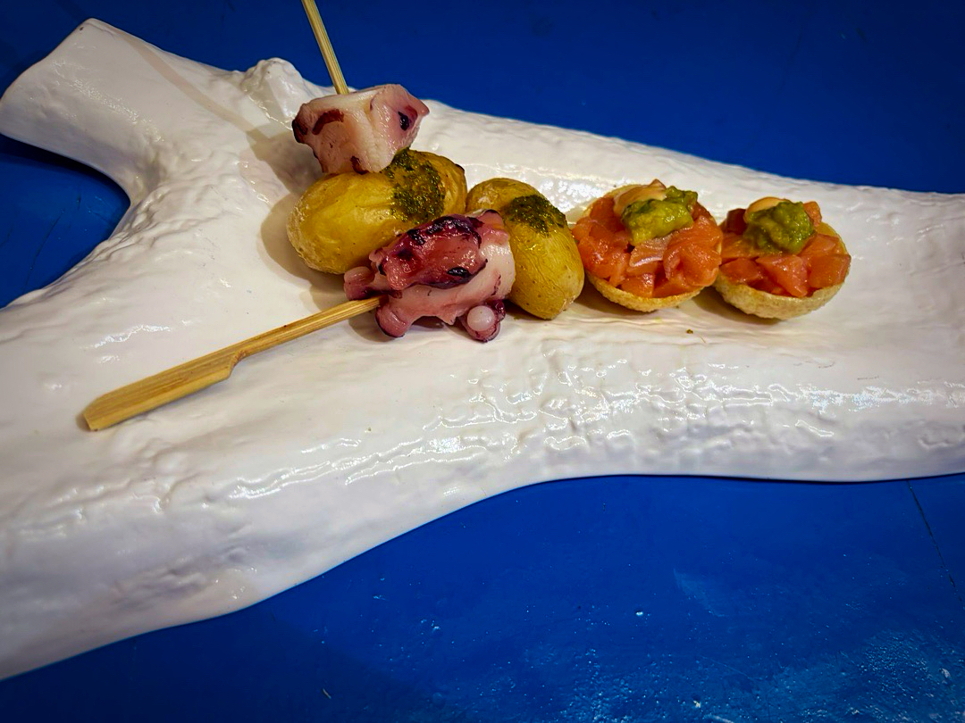 Uno tras otro fueron cayendo el Crujiente de salmón y aguacate, he Pulpo con papa arrugada y mojo verde, the Tartaleta de berenjena y ajo negro, he Katsu sando de anchoas, con su Aceituna sorpresa, he Milhojas de foie y un Brioche de langostinos y salsa Thai. Una Corvina acevichada con espuma de lima fue el puente hacia el fin de fiesta.